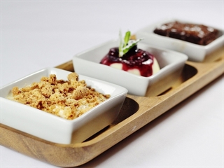 Selection of Italian cheeses served with grapes, walnuts, honey & biscuits